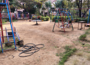 This image showcases the school campus exterior, highlighting a clean, spacious pathway and artistically designed wall murals that reflect cultural heritage. The open surroundings provide a welcoming, safe, and pleasant environment for students and visitors, enhancing the overall campus atmosphere.