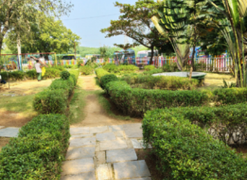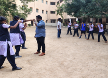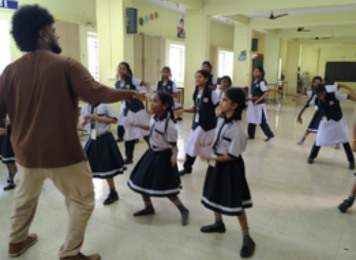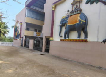 This image showcases the school campus exterior, highlighting a clean, spacious pathway and artistically designed wall murals that reflect cultural heritage. The open surroundings provide a welcoming, safe, and pleasant environment for students and visitors, enhancing the overall campus atmosphere.
